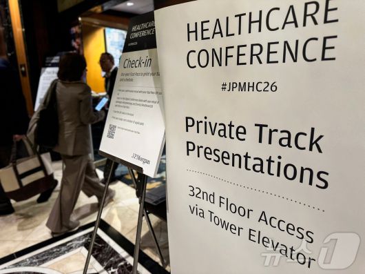 12일(현지시간) JP모건 헬스케어 콘퍼런스가 열리는 미국 캘리포니아주 샌프란시스코의 The Westin St.. FRANCIS 호텔 내 행사를 알리는 팻말이 보인다. ⓒ 로이터=뉴스1 |