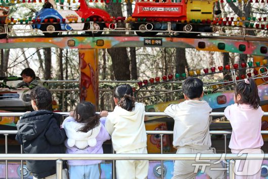 (대구=뉴스1) 공정식 기자 = 겨울답지 않게 포근한 날씨가 이어진 16일 대구 달서구 테마파크 이월드를 찾은 어린이들이 가벼운 옷차림으로 놀이기구 탑승을 기다리고 있다. 2026.1.16/뉴스1