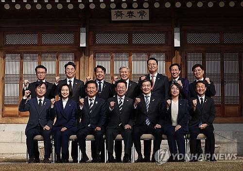이어 이 대통령과 여야 지도부는 상춘재 앞에서 기념 촬영을 했다.