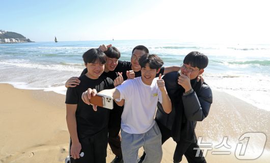 (부산=뉴스1) 윤일지 기자 = 포근한 날씨를 보인 16일 부산 해운대해수욕장에서 반팔 차림을 한 시민들이 셀카를 찍으며 추억을 남기고 있다. 2026.1.16/뉴스1yoonphoto@news1.krCopyright ⓒ 뉴스1. All rights reserved. 무단 전재 및 재배포, AI학습 이용 금지.