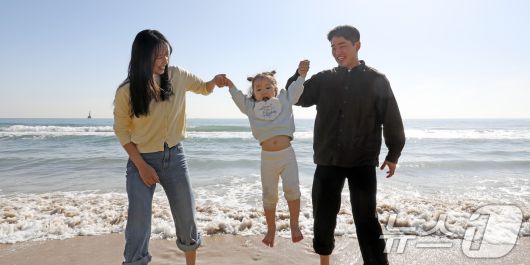 (부산=뉴스1) 윤일지 기자 = 포근한 날씨를 보인 16일 부산 해운대해수욕장에서 가벼운 복장 차림을 한 가족이 바닷물에 발을 담그며 즐거운 시간을 보내고 있다. 2026.1.16/뉴스1