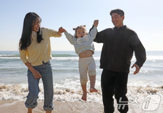 (부산=뉴스1) 윤일지 기자 = 포근한 날씨를 보인 16일 부산 해운대해수욕장에서 가벼운 복장 차림을 한 가족이 바닷물에 발을 담그며 즐거운 시간을 보내고 있다. 2026.1.16/뉴스1yoonphoto@news1.krCopyright ⓒ 뉴스1. All rights reserved. 무단 전재 및 재배포, AI학습 이용 금지.