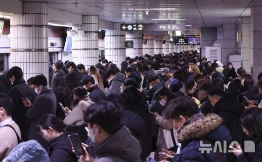 [서울=뉴시스] 김근수 기자 = 퇴근길에도 서울 시내버스 파업이 계속되는 13일 저녁 서울지하철 1호선 시청역이 퇴근하는 시민들로 붐비고 있다.사진은 기사와 직접적인 관련 없음. 2026.01.13. ks@newsis.com |