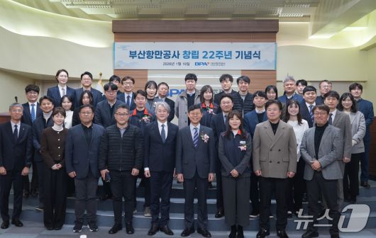 부산항만공사 창립 22주년 기념식에 참석한 직원들이 기념촬영을 하고 있다. (BPA 제공. 재판매 및 DB금지) |
