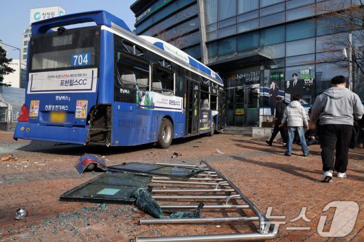 (서울=뉴스1) 황기선 기자 = 16일 오후 서울 서대문역 인근에서 시내버스가 건물로 돌진하는 사고가 발생해 시민들이 사고 현장을 살펴보고 있다. 이 사고로 현재 4명이 부상을 입고 그 중 1명이 중상인 것으로 알려졌다. 2026.1.16/뉴스1