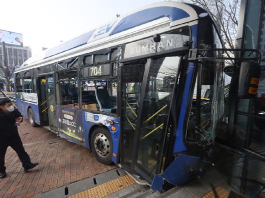 16일 경찰과 소방 등에 따르면 이날 오후 1시 27분쯤 서울 서대문구 서대문역사거리에서 한 시내버스가 인도를 향해 돌진하는 사고가 발생했다.