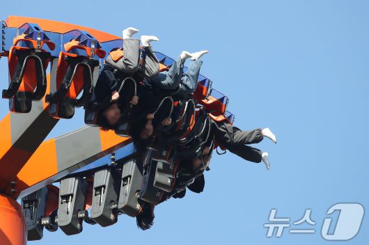 (대구=뉴스1) 공정식 기자 = 겨울답지 않게 포근한 날씨가 이어진 16일 대구 달서구 테마파크 이월드를 찾은 시민들이 놀이기구에 몸을 맡긴 채 즐거운 시간을 보내고 있다. 이월드는 포근한 날씨가 이어지자 점검 중인 일부 놀이기구와 수상 놀이기구를 제외하고, 눈썰매장을 비롯한 대부분 놀이기구를 정상 운영하고 있다. 2026.1.16/뉴스1