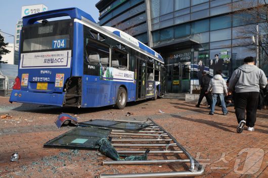 16일 오후 1시 15분쯤 서대문역 인근 NH농협은행 본점영업부 건물에 시내버스가 돌진하는 사고가 났다.