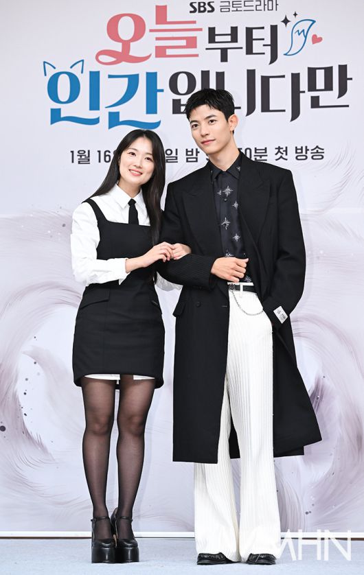 (MHN 이현지 기자) 배우 김혜윤, 로몬이 16일 오후 서울 양천구 SBS 목동에서 진행된 드라마 '오늘부터 인간입니다만' 제작발표회에 참석해 포토타임을 갖고 있다.