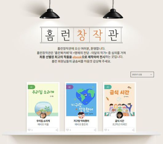홈런 창작관은 홈런 초중등 회원들이 홈런북카페 내 '나도 작가다' 코너에 게시한 작품 가운데 최우수작으로 선정된 작품을 전시하는 공간이다.