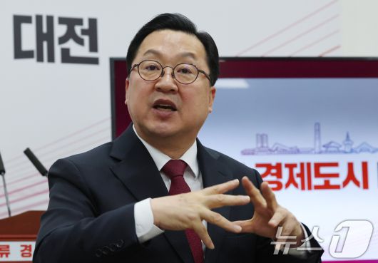 이장우 대전시장이 16일 오전 시청 브리핑룸에서 대전·충남 행정통합 관련 긴급 브리핑을 하고 있다. ⓒ News1 김기태 기자 |
