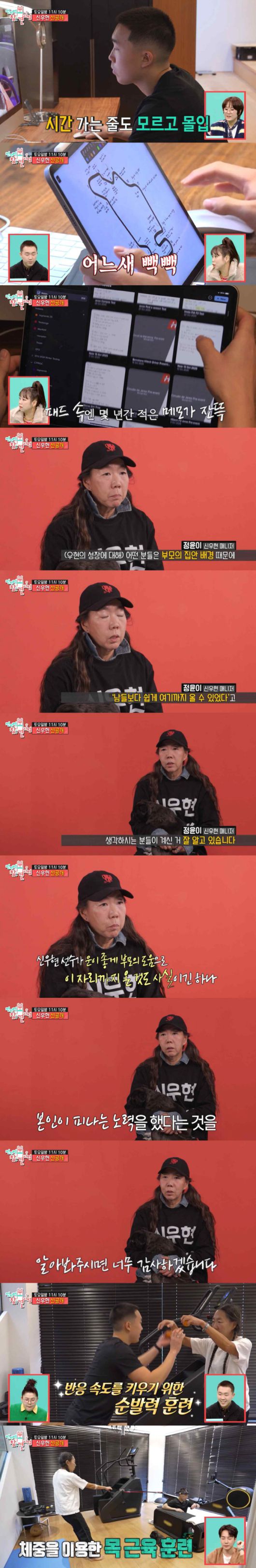 신우현의 매니저이자 어머니인 정윤이 씨는 아들의 성장 과정에 대해 "신우현 선수가 4년 만에 많은 성장을 하게 됐는데, 어떤 분들은 부모의 집안 배경 때문에 남들보다 쉽게 이자리까지 올 수 있었다라고 생각하시는 거 알고 있다"고 솔직하게 털어놨다. 이어 "신우현 선수가 운이 좋게 부모님의 도움으로 이 자리까지 온 것도 사실이긴 하지만 본인이 피나는 노력을 하는 것을 알아봐 달라"고 당부했다.