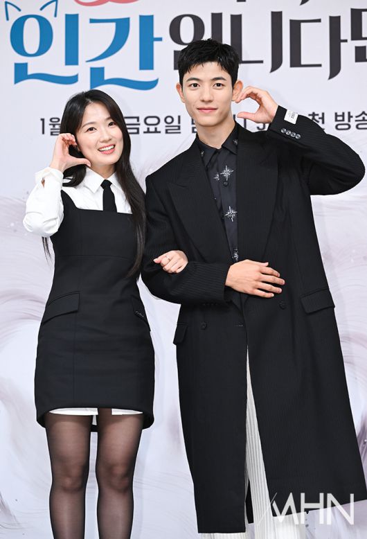 (MHN 이현지 기자) 배우 김혜윤, 로몬이 16일 오후 서울 양천구 SBS 목동에서 진행된 드라마 '오늘부터 인간입니다만' 제작발표회에 참석해 포토타임을 갖고 있다.