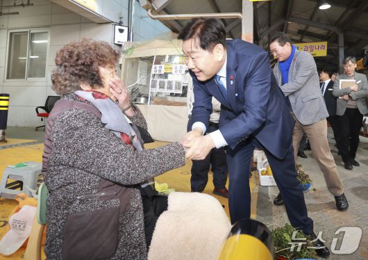 16일 '도민과 함께하는 2026년 시군 방문' 행사를 위해 전북 임실군을 방문한 김관영 도지사가 전통시장에서 한 상인과 손을 잡고 이야기를 나누고 있다.(전북도 제공. 재판매 및 DB금지)/뉴스1 |