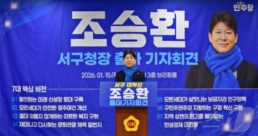 (광주=뉴스1) = 조승환 전 광주 서구청 서기관이 15일 광주시의회에서 서구청장 출마를 선언하고 있다. (조승환측 제공. 재판매 및 DB 금지) 2026.1.16/뉴스1zorba85@news1.krCopyright ⓒ 뉴스1. All rights reserved. 무단 전재 및 재배포, AI학습 이용 금지.