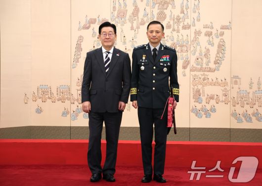 (서울=뉴스1) 허경 기자 = 이재명 대통령 16일 청와대 본관에서 열린 3성 장군 진급·보직 신고 및 수치 수여식에서 최장식 육군참모차장과 기념촬영을 하고 있다. 2026.1.16/뉴스1seiyu@news1.krCopyright ⓒ 뉴스1. All rights reserved. 무단 전재 및 재배포, AI학습 이용 금지.
