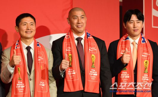 FIFA 월드컵 트로피 투어 미디어 간담회가 16일 서울 용산구 한강로동 CGV용산아이파크몰에서 열렸다. 이영표, 차두리, 구자철이 포토타임을 갖고 있다. 용산=박재만 기자 pjm@sportschosun.com/2026.01.16/ |
