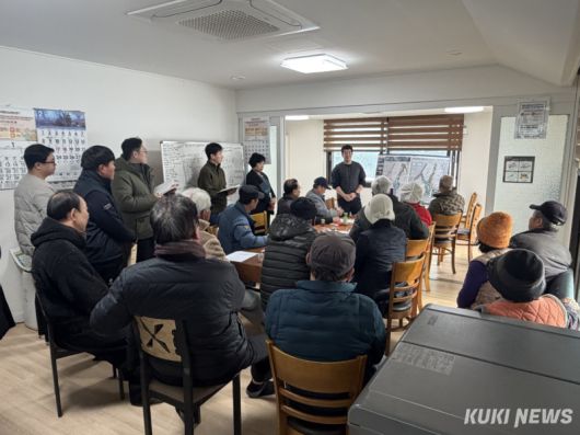 15일 춘천 상중도 마을회관에서 열린 상중도 도시생태축 복원사업 주민설명회. (사진=춘천시) |