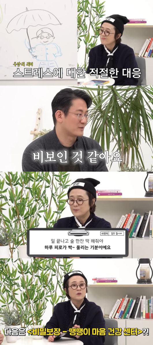 이광민은 "이 술을 통해서 그 다음날 활기차게 일을 지속할 수 있다면 이건 필요악"이라며 "우울할 때 술로 푸는 게 제일 안 좋다"고 말했다.
