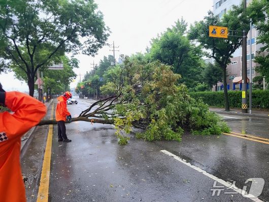전북 소방이 쓰러진 나무를 제거하고 있다.(전북소방본부 제공. 재판매 및 DB금지) |