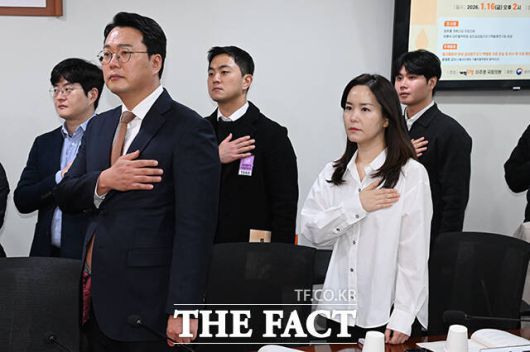 [더팩트ㅣ국회=박헌우 기자] 이주영 개혁신당 정책위의장과 천하람 개혁신당 원내대표 등 참석자들이 16일 오후 서울 여의도 국회에서 열린 '급성림프모구 백혈병 치료 환경 개선 방안 정책토론회'에 참석해 기념촬영을 하고 있다.