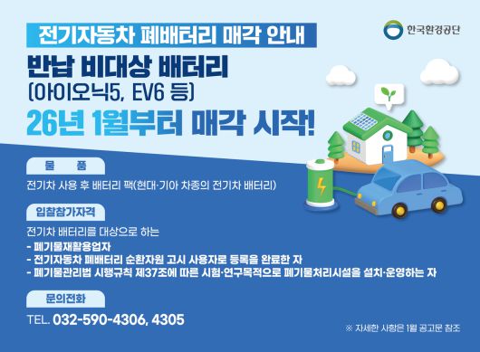 [헤럴드경제=이태형 기자] 기후에너지환경부 산하 한국환경공단은 16일부터 전기차 사용 후 배터리 유통지원 시범사업의 일환으로, 국가 반납 의무가 없는 전기차 사용 후 배터리 민간 공급을 본격적으로 시작한다고 밝혔다.