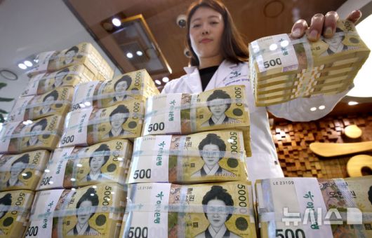 [서울=뉴시스] 김금보 기자 = 15일 서울 중구 하나은행 위변조대응센터에서 직원이 원화를 정리하고 있다.3월 시중 통화량(M2)이 23개월 만에 감소해 4227조8000억원으로 줄었다. 한국은행이 15일 발표한 '2025년 3월 통화 및 유동성'에 따르면 올해 3월 M2(광의통화, 평잔)는 전월대비 3조8000억원 감소한 4227조8000억원을 기록했다. 2025.05.15. kgb@newsis .com |