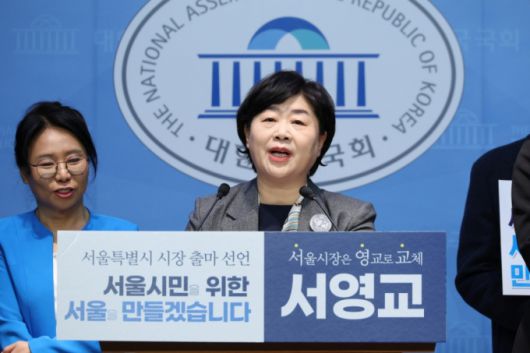 서영교 더불어민주당 의원이 15일 서울 여의도 국회 소통관에서 서울시장 출마 선언을 하고 있다. /사진=뉴스1. |