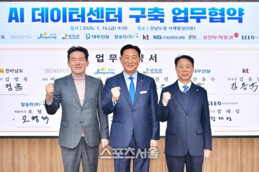 군은 16일 전남도청에서 전라남도, ㈜베네포스, 케이티(KT), 대우건설, 탑솔라, 아이피에이(IPA), 케이지(KG)엔지니어링, 유진투자증권, 시드인베스트먼트 자산운용과 함께 ‘AI 데이터센터’ 구축 업무협약을 체결했다.