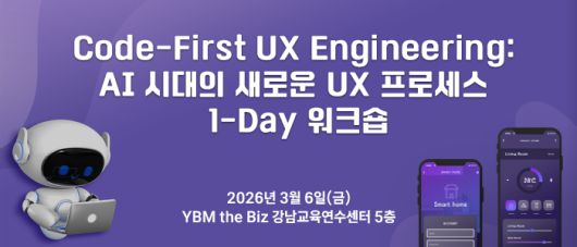 전자신문인터넷, 케이모바일이 주관하는 코딩 몰라도 OK! 'Code-First UX Engineering: AI 시대의 새로운 UX 프로세스 1-Day 워크숍”이 3월 6일(금) YBM the Biz 강남교육연수센터에서 개최된다.