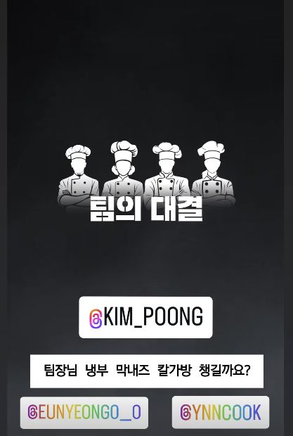 이와 함께 권성준은 "팀장님 냉부 막내즈 칼가방 챙길까요?"라는 글과 함께 김풍, 박은영, 윤남노를 태그했다. 김풍을 팀장으로 두고, JTBC '냉장고를 부탁해' 막내 셰프들끼리 출전하자는 것.