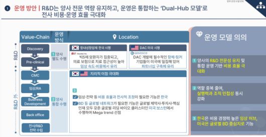 회사는 이를 통해 한국과 미국의 지리적 이점을 최대한 활용하겠다는 구상이다. 한국이 임상과 전략 등 비용 효율과 전사적 조정이 가능하다면 ,미국 보스턴은 글로벌 제약사와 투자사, 핵심 인재를 모두 갖춘 글로벌 리딩 바이오 클러스터가 위치해 있어 BD 등의 글로벌 네트워크 기능을 갖췄기 때문이다.