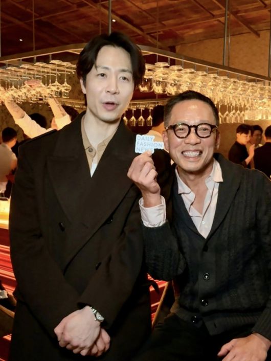 정태영 현대카드 부회장이 흑백요리사 시즌2 출연진인 손종원 셰프와 사진을 촬영하고 있다./사진제공=정태영 부회장 페이스북 |