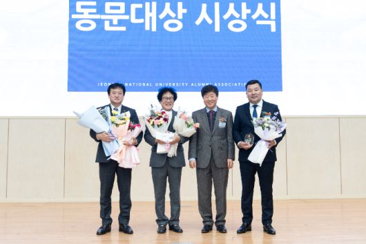 정강선 전북체육회장(왼쪽에서 첫번째)이 지난 15일 2026 전북대학교 총동창회 신년교례회·동문대상 시상식에서 공로상을 수상했다. 전북체육회 제공 |