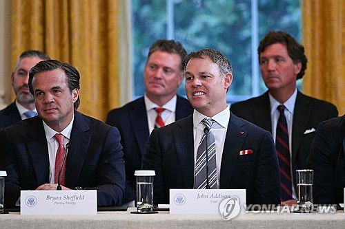 지난 9일(현지시간) 트럼프 대통령-석유 기업인 면담 참석한 존 애디슨(오른쪽) |