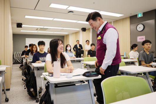 이필형 동대문구청장이 신설동 교육지원센터를 찾아 시설 운영 현황을 점검하고 있다. 동대문구 제공 |