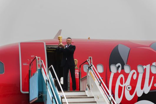 [인터풋볼=주대은 기자] 코카-콜라 특별 전세기를 타고 한국에 상륙한 오리지널 FIFA 월드컵™ 트로피가 국내 팬들에게 공개됐다.
