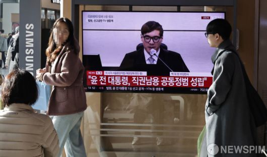 [서울=뉴스핌] 양윤모 기자 = 16일 오후 특수공무집행방해, 직권남용 권리행사방해 등 혐의로 기소된 윤석열 전 대통령에게 서울중앙지법 형사합의35부(백대현 부장판사)가 1심에서 징역 5년을 선고한 가운데, 서울역 대합실을 찾은 시민들이 관련 뉴스를 시청하고 있다. 2026.01.16 yym58@newspim.com |