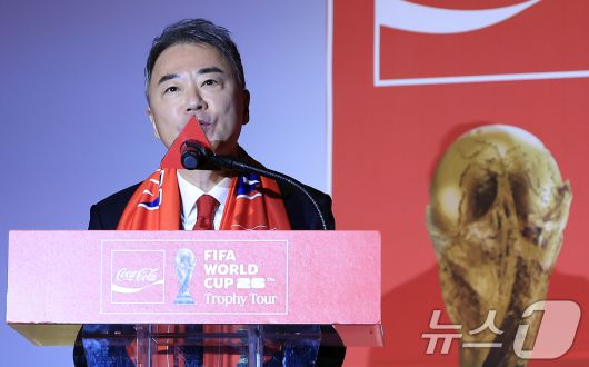 (서울=뉴스1) 박정호 기자 = 이준엽 한국 코카-콜라 대표가 16일 오후 서울시 용산구 한강대로 CGV 용산아이파크몰 스크린X관에서 열린 FIFA 월드컵 트로피 투어 미디어 간담회에서 인사말를 하고 있다. 2026.1.16/뉴스1pjh2035@news1.krCopyright ⓒ 뉴스1. All rights reserved. 무단 전재 및 재배포, AI학습 이용 금지.