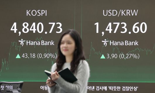 16일 서울 중구 하나은행 딜링룸 현황판에 코스피지수 등이 표시돼 있다. 원·달러 환율은 전날보다 3.9원 오른 1473.6원으로 집계됐다. 연합뉴스 |