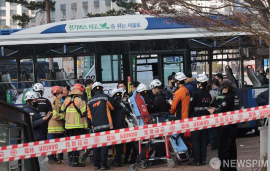 [서울=뉴스핌] 이길동 기자 =16일 오후 서울 서대문역 인근에서 시내버스가 인도와 건물로 돌진하는 사고가 발생해 경찰과 소방대원이 현장을 수습하고 있다.2026.01.16 gdlee@newspim.com |