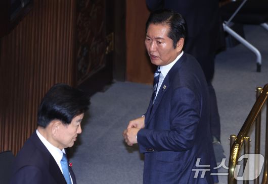 (서울=뉴스1) 신웅수 기자 = 정청래 더불어민주당 대표와 정동영 통일부 장관이 16일 서울 여의도 국회에서 열린 제431회 국회(임시회) 제1차 본회의에서 대화하고 있다. 2026.1.16/뉴스1phonalist@news1.krCopyright ⓒ 뉴스1. All rights reserved. 무단 전재 및 재배포, AI학습 이용 금지.