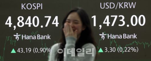 코스피가 사상 처음으로 4,800대에서 장을 마친 16일 서울 중구 하나은행 딜링룸 현황판에 코스피지수 등이 표시돼 있다. 코스피는 지수는 전장 대비 23.11포인트(0.48%) 오른 4,820.66으로 출발해 한때 4,855.61까지 오르며 장중과 종가 모두 사상 최고치를 경신했다. 코스닥은 3.43포인트(0.36%) 오른 954.59에 장을 끝냈다.