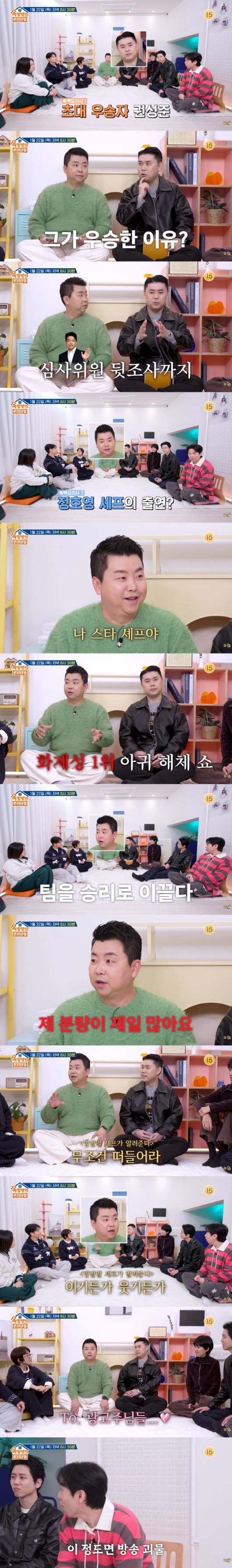 KBS측은 16일 "정호영X권성준 '흑백요리사' 비하인드 대방출"이라며 '옥탑방의 문제아들' 예고편을 공개했다.