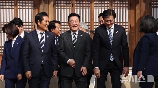 [서울=뉴시스] 김지은 기자 = 이재명 대통령이 16일 여야 지도부를 청와대로 초청해 오찬을 함께하며 국익을 위한 초당적 협력을 당부했다. 이 대통령은 "대통령은 민주당 대표가 아니다"라며 "국익을 위해 대외관계나 국가안보 문제에 대해서는 가급적 힘을 모아달라"고 했다.