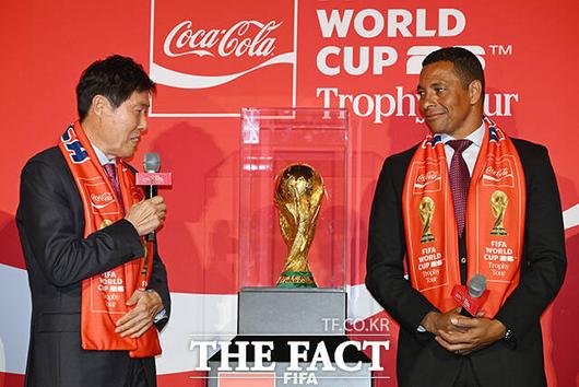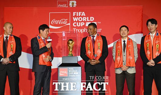 [더팩트ㅣ서예원 기자] 차범근 전 한국축구대표팀 감독이 16일 오후 서울 용산구 CGV 용산아이파크몰에서 열린 ‘FIFA 월드컵™ 트로피 투어 by 코카-콜라’ 미디어 간담회에 참석해 트로피를 바라보고 있다.