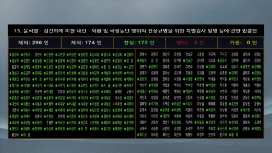 국회, '2차 종합특검법' 본회의 통과…찬성 172명