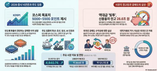 그러면서 "대형주 중심의 수급 흐름을 면밀히 관찰해야 한다"며 빚투와 공매도 잔고의 급격한 변동은 시장의 방향성이 바뀔 때 가장 먼저 확인해야 할 신호"라고 강조했다.