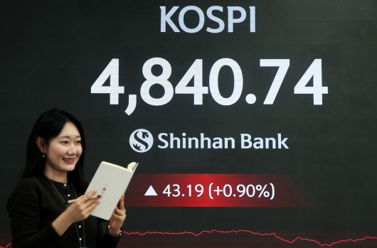 이날 코스피는 전장보다 43.19포인트(0.90%) 오른 4840.74에 거래를 마감했다.