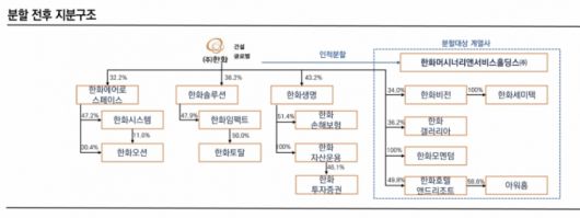 김상수 한신평 산업1실 수석애널리스트는 "분할 존속법인인 한화는 건설·화약·무역 등 자체사업과 더불어 한화에어로스페이스, 한화솔루션 등 기존 비금융 주력 계열사와 한화생명 중심의 금융계열사를 지배하게 되며, 방산·조선·화학·에너지·금융 등의 사업부문에 사업역량·투자 재원 등을 집중할 계획이다"며 "이번 인적분할 이외에 금융부문의 분할, 지배주주 간의 지분거래 등 추가적인 지배구조 변경 계획은 없는 것으로 파악된다"고 했다.